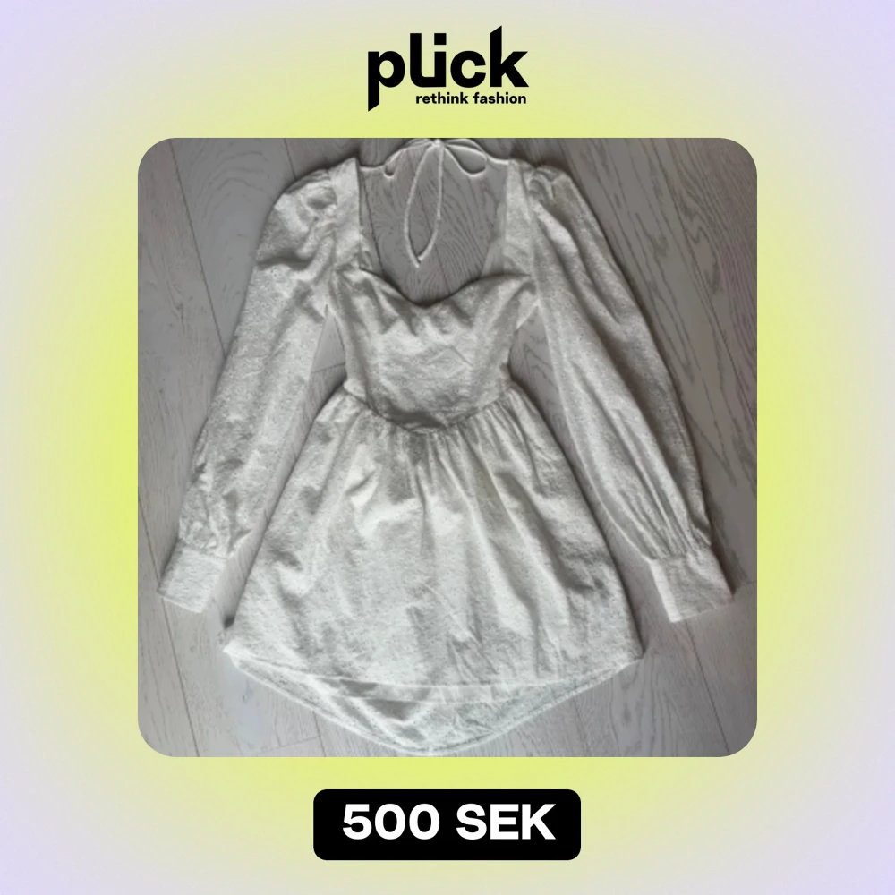 En vit spetskläning av blommigt mönster och helt oanvänd. Klänningen är öppen i ryggen med snörning. En dröm att ha i garderoben nu på sommaren och nästa semester.