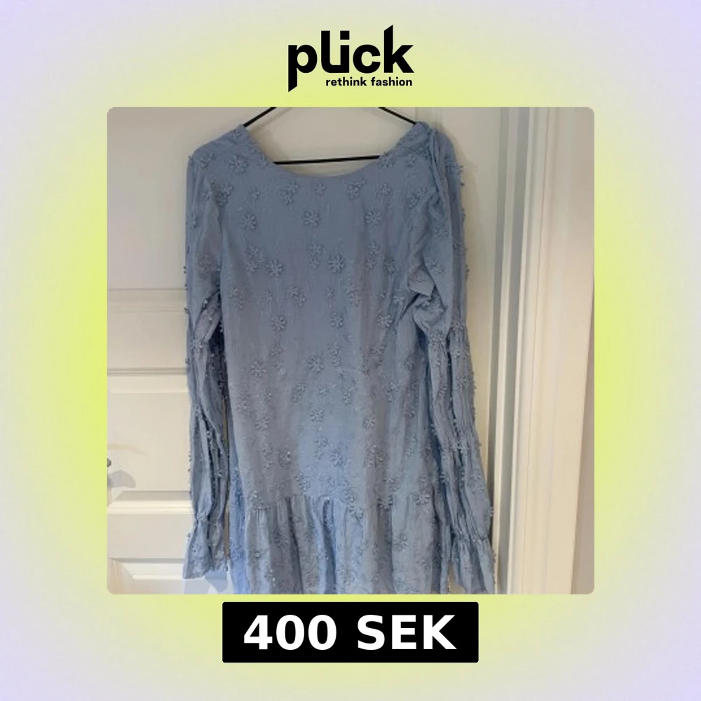 Supersöt ljusblå kortklänning från NA-KD med broderade blommor över hela tyget. Klänningen har långa ärmar med volangdetaljer och en djup rygg. Perfekt för vår och sommar när du vill känna dig extra fin.