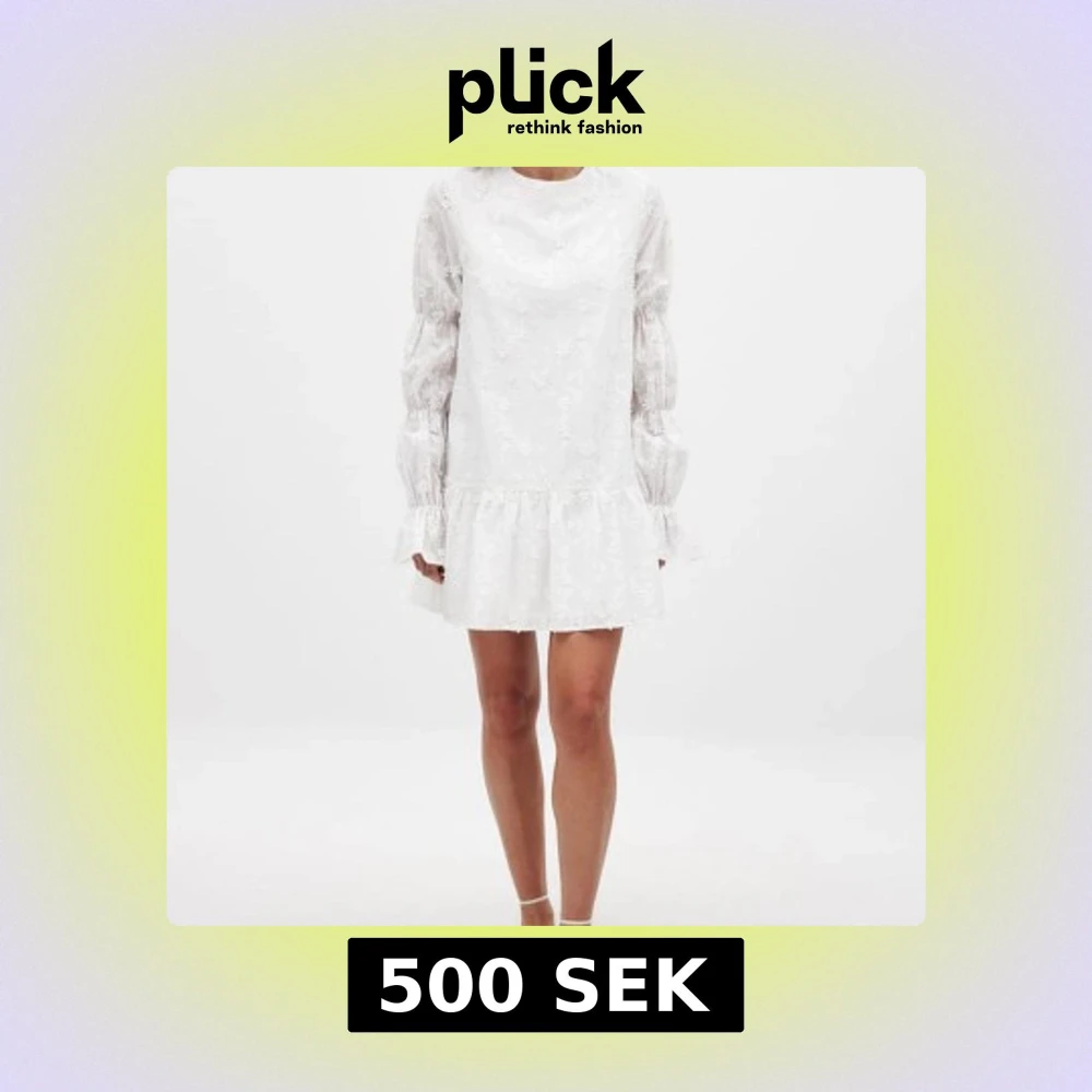 Vit kort klänning med broderade blommor