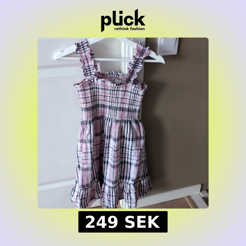 Supersöt kort klänning från NA-KD i rosa, svart och vit rutig bomull. Smockad överdel, volangdetaljer på axelband och nederkant. Perfekt för sommarens varma dagar!