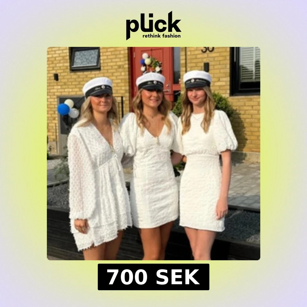 Superfin vit kort klänning med v-ringning, långa ärmar och volangdetaljer. Klänningen har struktur i tyget och knyt i midjan för en snygg passform. Perfekt för student eller sommarens alla tillfällen!