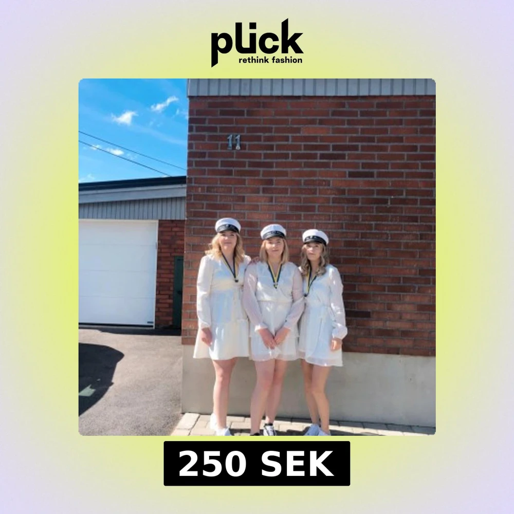 Säljer min studentklänning. Bra skick! Den har ett band som man knyter runt midjan. Luftiga långa ärmar. Klänningen längst till höger på första bilen!