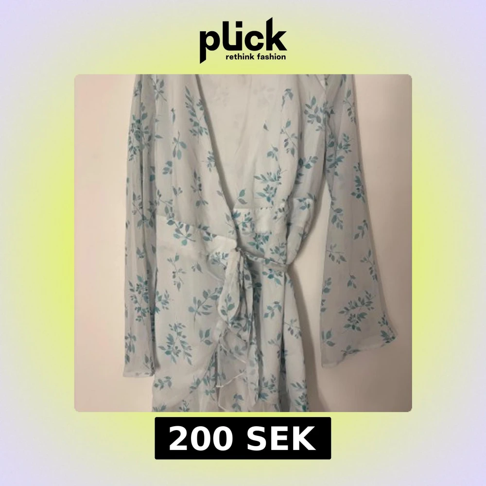 Säljer en ljusblå omlottklänning från NA-KD med ett vackert blommönster. Klänningen har långa ärmar och knytning i midjan för en smickrande passform. Perfekt för vår och sommar! Endast använd 1 gång!