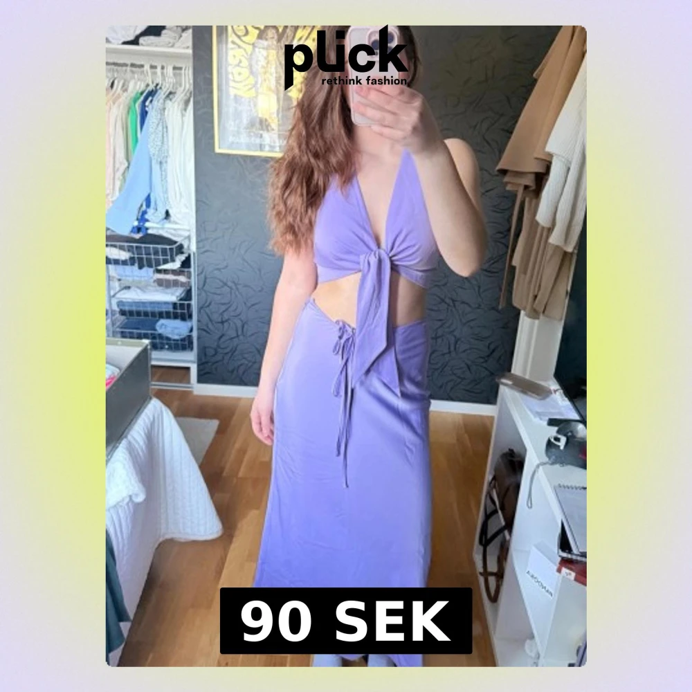 Lila set från NA-KD med kjol och topp med knyt framtill. Toppen har djup v-ringning och öppen rygg. Materialet är mjukt och glansigt!