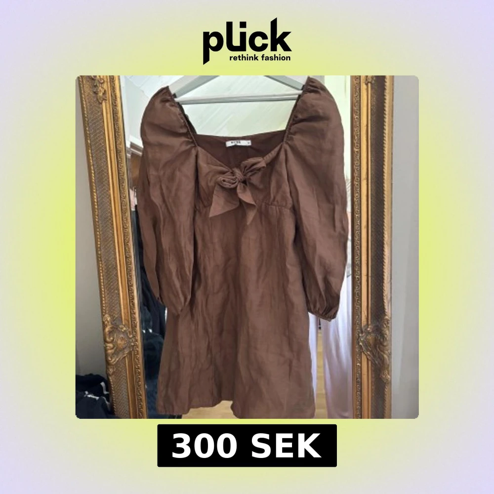 Supersöt brun klänning från NA-KD med puffiga långärmar och en stor rosett framtill. St M. Rosetten går att knytas om och fixar till där framme