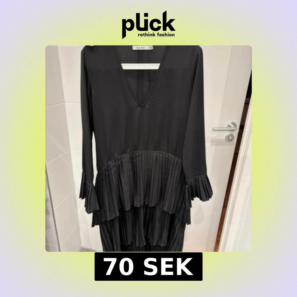 Snygg svart klänning från NA-KD med v-ringning och långa ärmar. Klänningen har plisserade detaljer vid midjan och ärmsluten som ger en elegant touch. Perfekt för en stilren look.