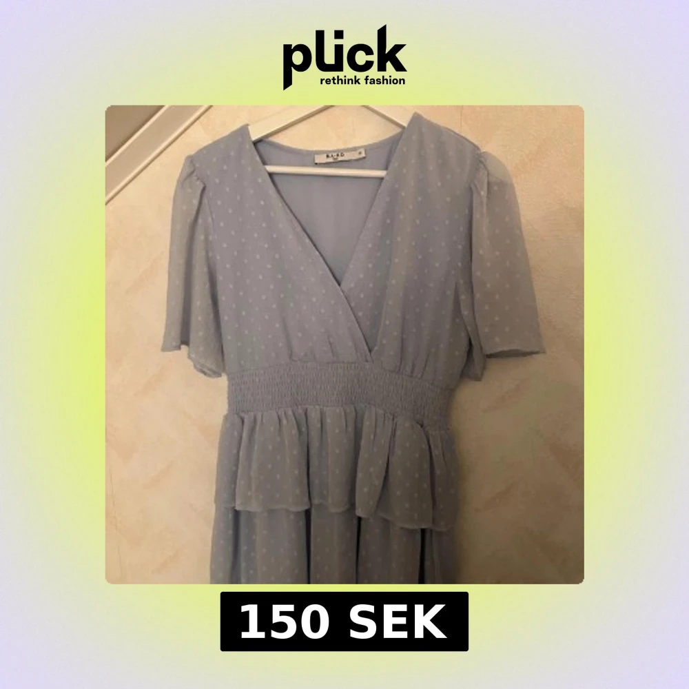Supersöt ljusblå klänning från NA-KD med vita prickar, v-ringning och smock i midjan. Klänningen har korta ärmar och volangdetaljer vid kjolen. Perfekt för sommarens alla tillfällen! (Har aldrig används)