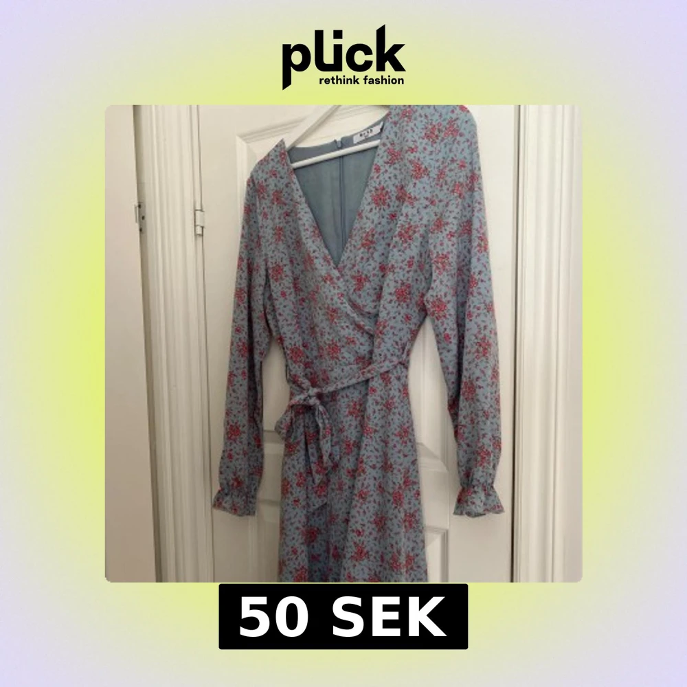 Supersöt ljusblå omlottklänning från NA-KD med rosa blommigt mönster, långa ärmar med volangdetalj vid ärmslut och knytband i midjan. Perfekt för vår och sommar när du vill känna dig extra fin.