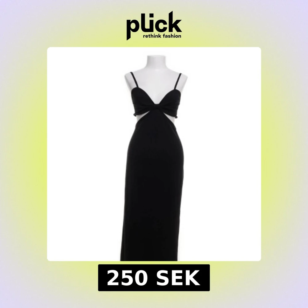 Elegant svart långklänning från NA-KD med smala axelband och en stilren design. Klänningen har en unik detalj med öppen rygg och knyt framtill som ger en modern touch. Perfekt för en kväll ute eller en speciell tillställning. Klänningen har en slits vid vänster sida