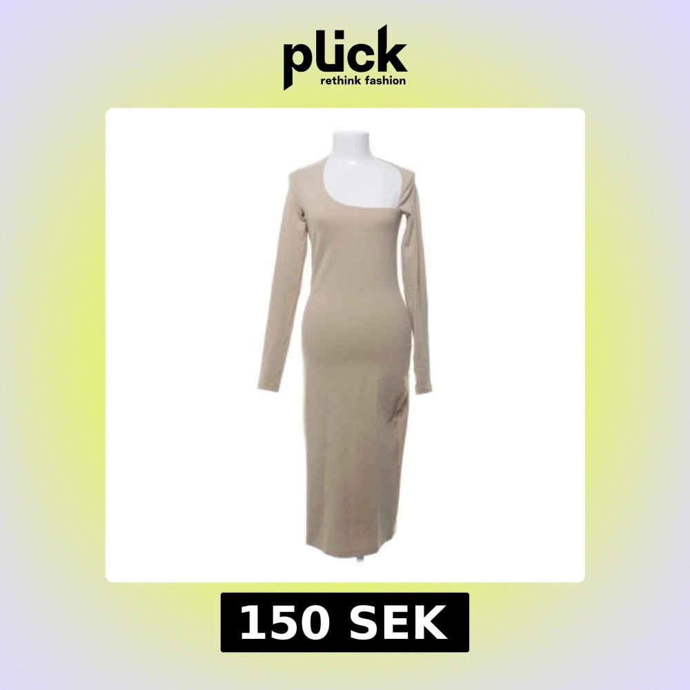Supersnygg beige långklänning från NA-KD med asymmetrisk halsringning och lång ärm. Klänningen är figurnära och har en stilren, minimalistisk look som verkligen framhäver silhuetten. Mjuk och stretchig kvalitet som känns skön mot huden.