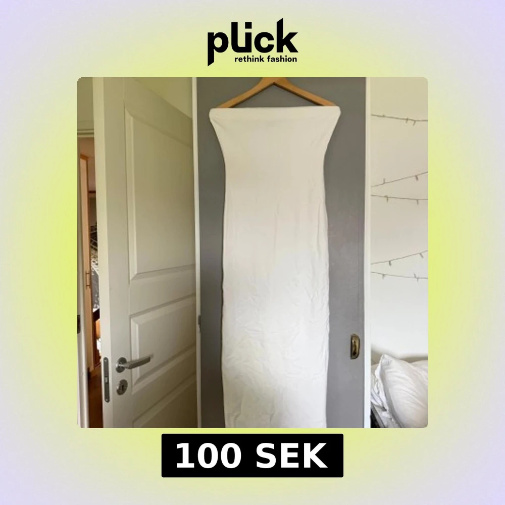 Vit bandlös klänning med slits baktill. Storlek M. Endast testat inomhus