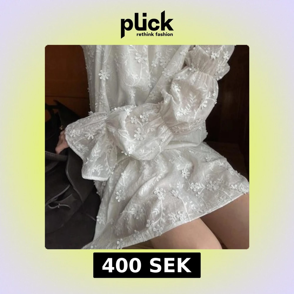 Superfin vit kortklänning med broderade blommor och volangdetaljer. Klänningen har långa puffärmar, öppen rygg med knytband och är gjord i ett tunt, lätt material. Perfekt för sommarens alla tillfällen och ger en romantisk vibe.
