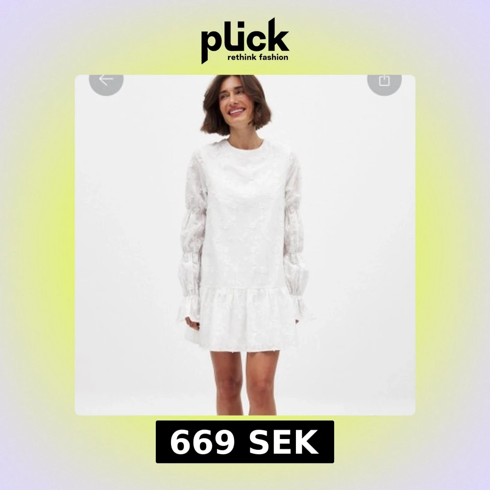 Säljer en vit klänning med broderade blommor, volangdetaljer och lång ärm. Klänningen har öppen rygg med knytband och en lös passform. Perfekt för vår och sommar! Klänningen är aldrig använd, enbart testad!! Super fin och väldigt populär och trendig klänning från Nakd som tyvärr inte kommer komma till användning. Perfekt inför studenten!! Nypris 699, mitt pris 669 men det kan diskuteras