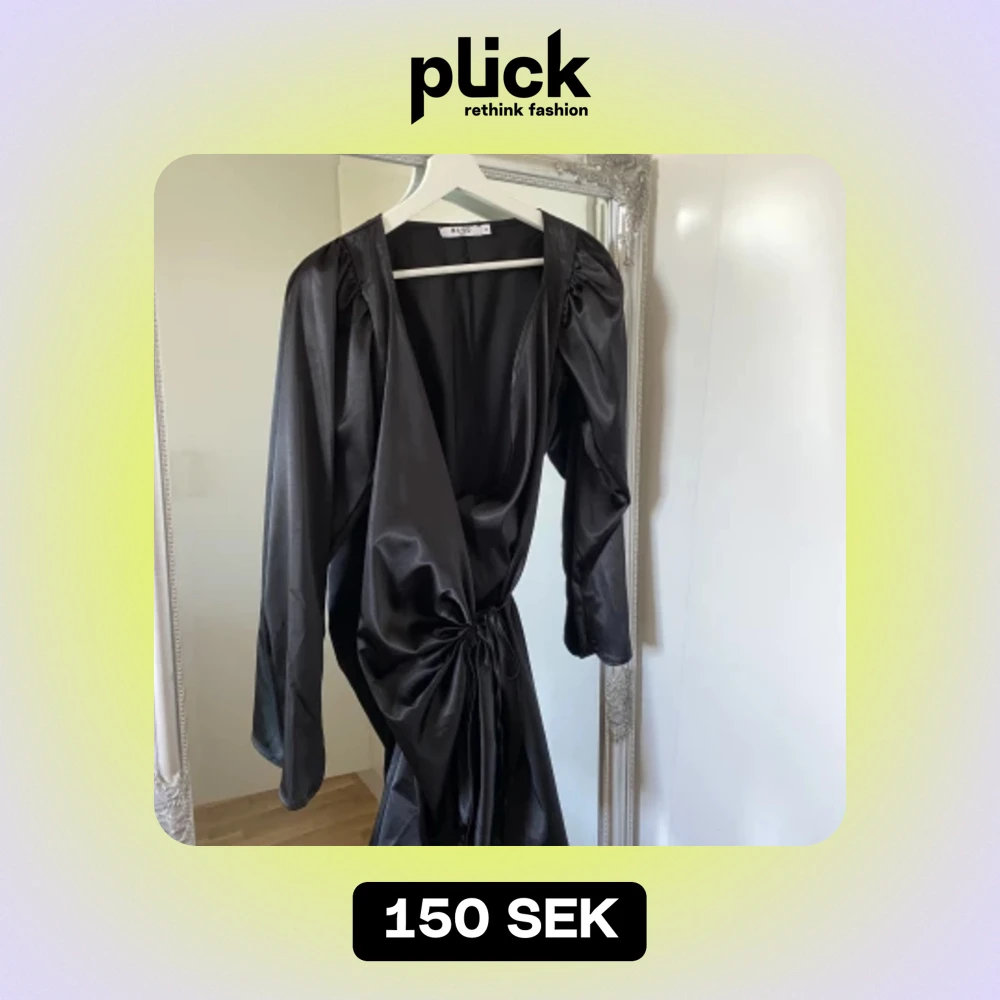 En svart satin klänning som är använd en gång.