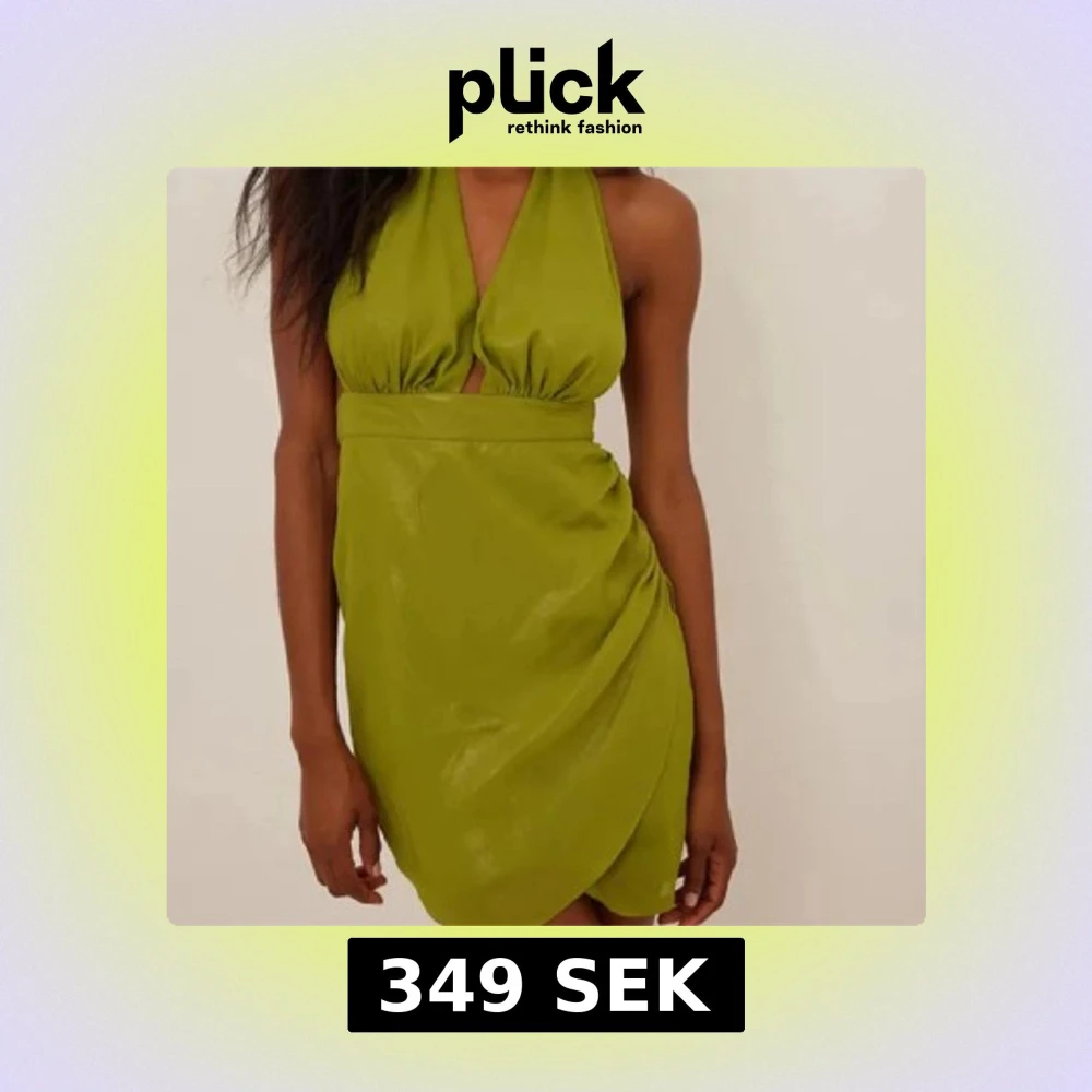 Snygg grön ärmlös klänning med halterneck och öppen rygg. Klänningen har en omlott-design och knytband i nacken. Perfekt för en somrig look!💕💕