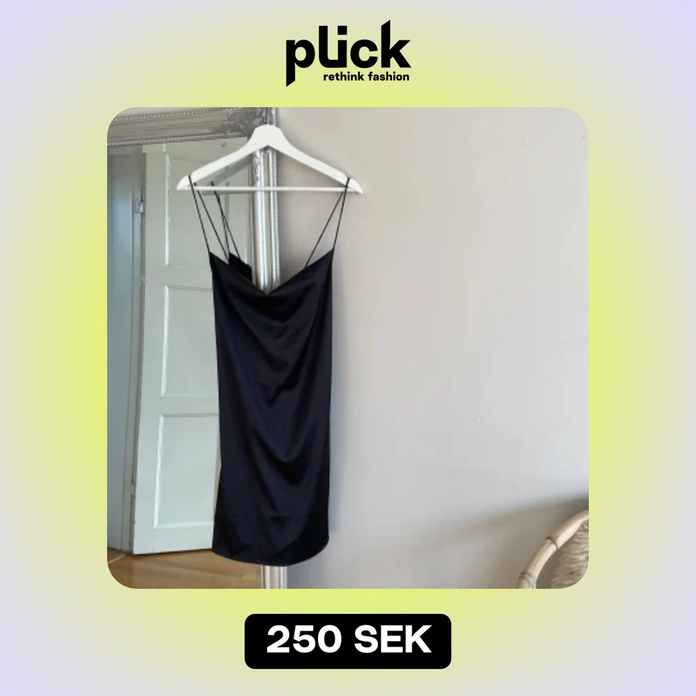 Säljer min älskade svarta satin klänning, använd endast en gång, såå fin och finns inte längre att köpas🫶🏻