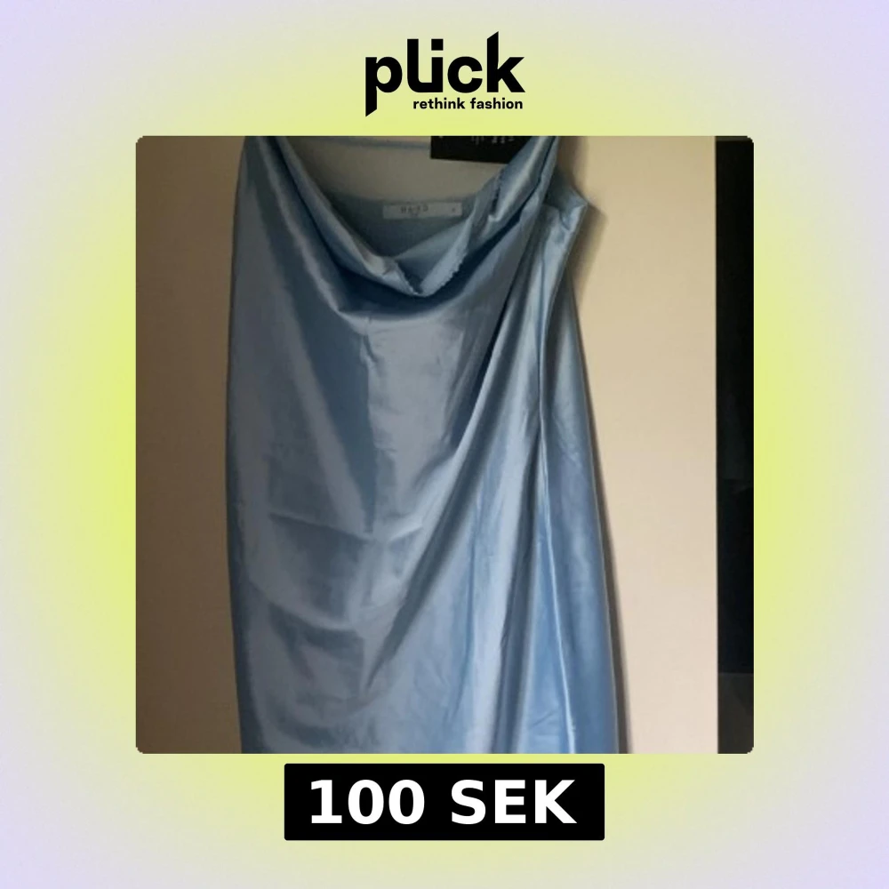 Supersnygg ljusblå klänning från NA-KD i glansig satin och slits. Klänningen har justerbara axelband och glittrigt mesh tyg på insidan. Tycker att den är liten i storleken. Endast provad. Lappen sitter kvar.