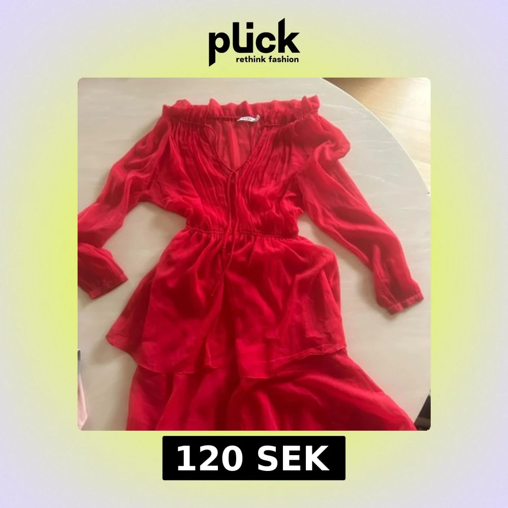 Snygg röd kortklänning från NA-KD i tunn, luftig polyester. Klänningen har omlottdesign, v-ringning med snörning, offshoulder och långa ärmar. Perfekt för dig som vill sticka ut med en färgstark look , använd en gång, XS men kan säga att passar även S.