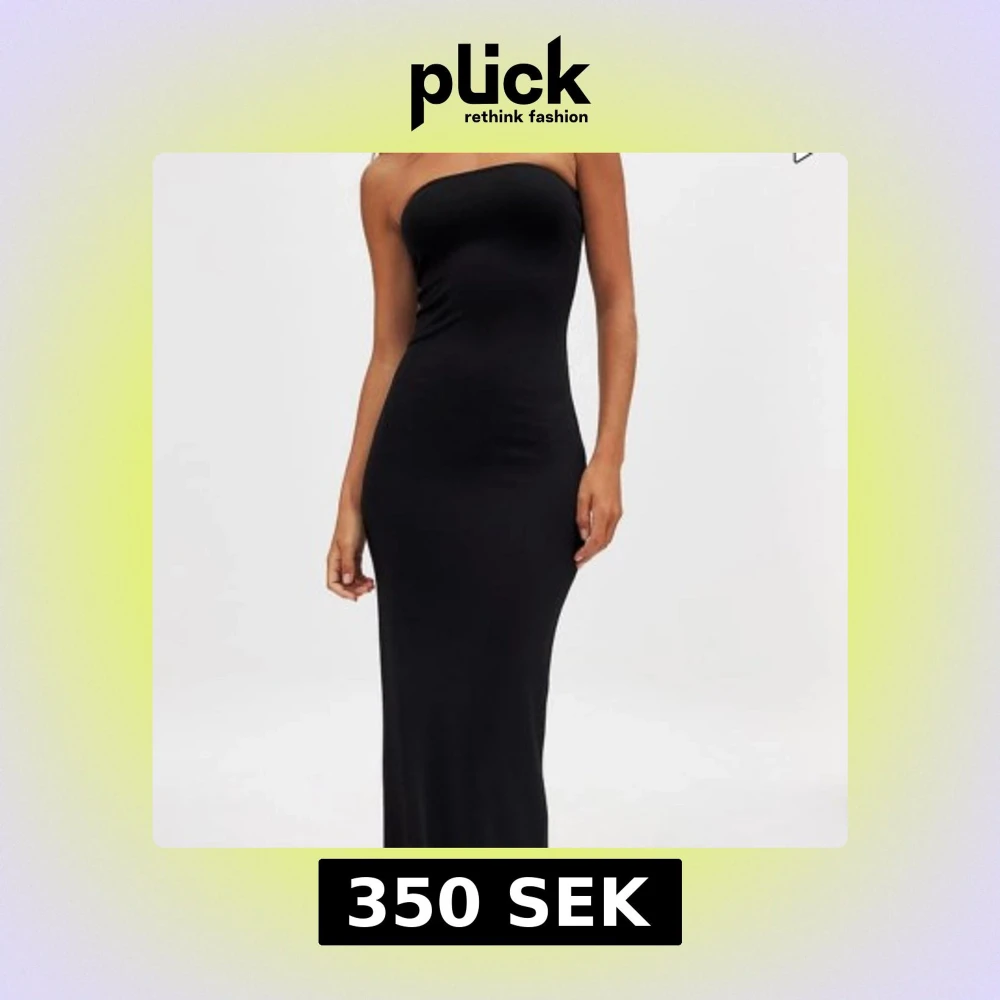 PRISLAPP KVAR!Säljer en svart, axelbandslös långklänning med slim passform. Klänningen har en snygg slits bak och är figurnära hela vägen ner. Perfekt för dig som gillar minimalistisk och stilren design. Materialet känns mjukt och följsamt mot kroppen.