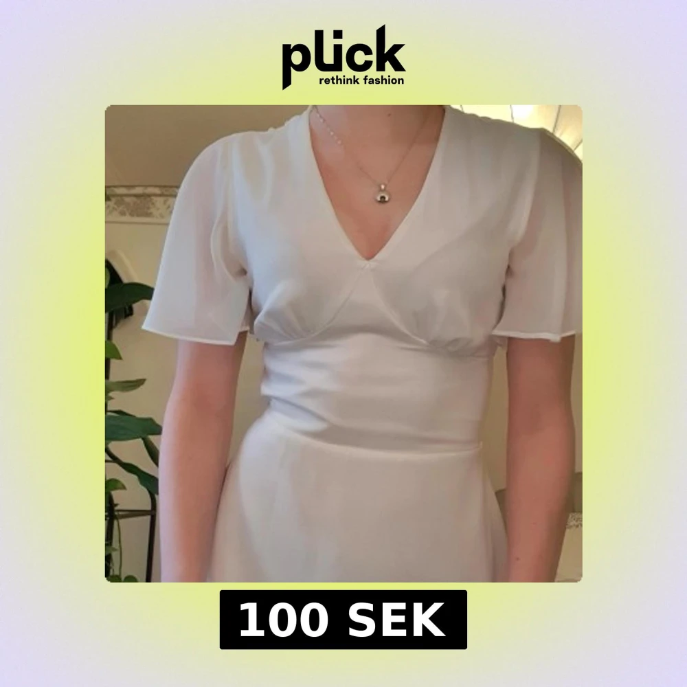 Superfin vit klänning med v-ringning och omlottkänsla. Klänningen har korta, luftiga ärmar och ett flowy fall. Perfekt för sommarens alla tillfällen och ger en fräsch och stilren look.