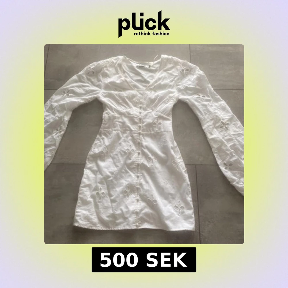 Superfin vit klänning från NA-KD med broderade blommor och knappar framtill. Klänningen har lång ärm, markerad midja och v-ringning. Perfekt för sommarens alla tillfällen! Använt 1 gång! Storlek 32/xxs plus har sytt om tightare! Köpte för 600-700 kr.