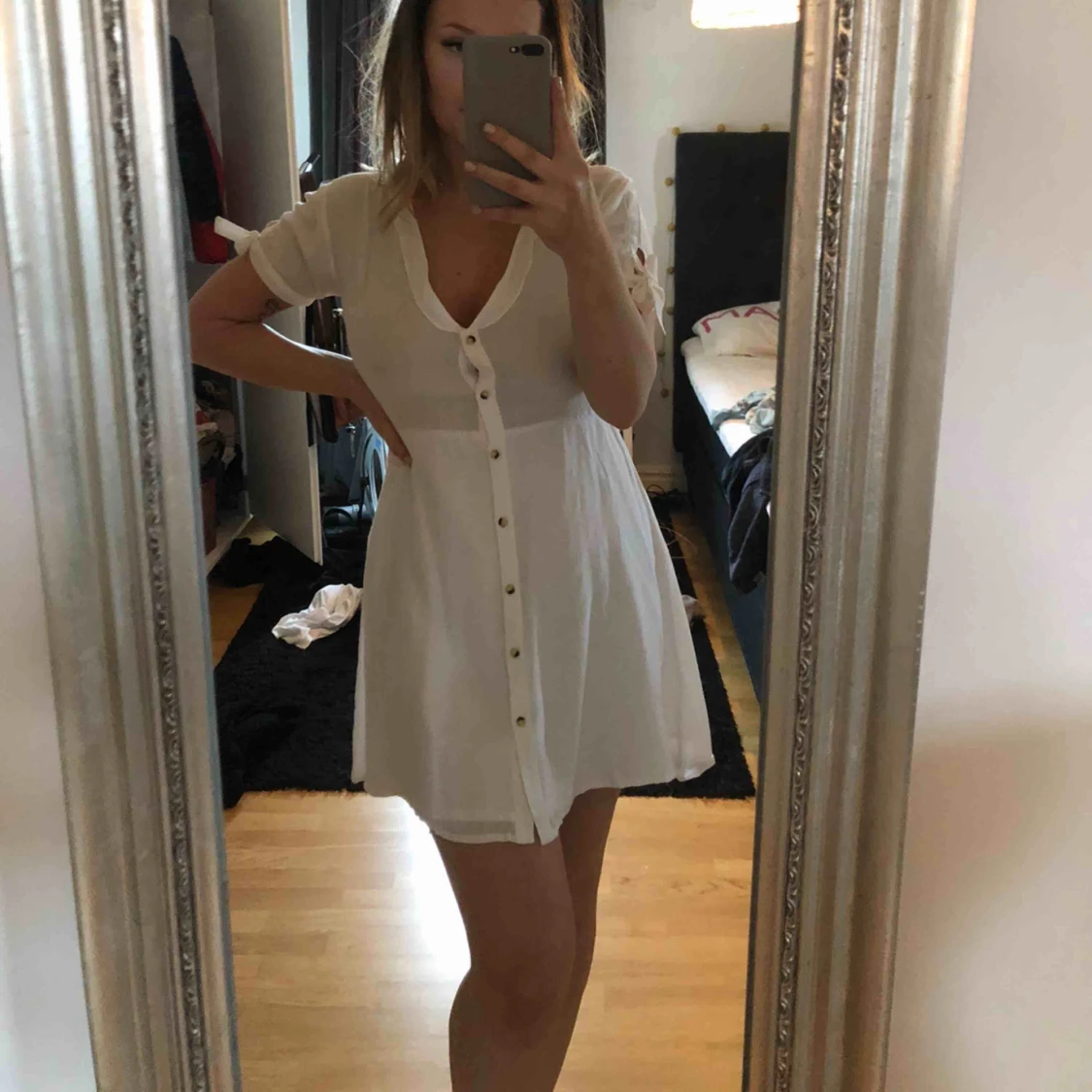 En riktig sommardröm. Var ett alternativ till studentklänning för ett år sedan. Aldrig använd. Priset pga att snöret runt midjan är försvunnet. Lika fin utan dock.
