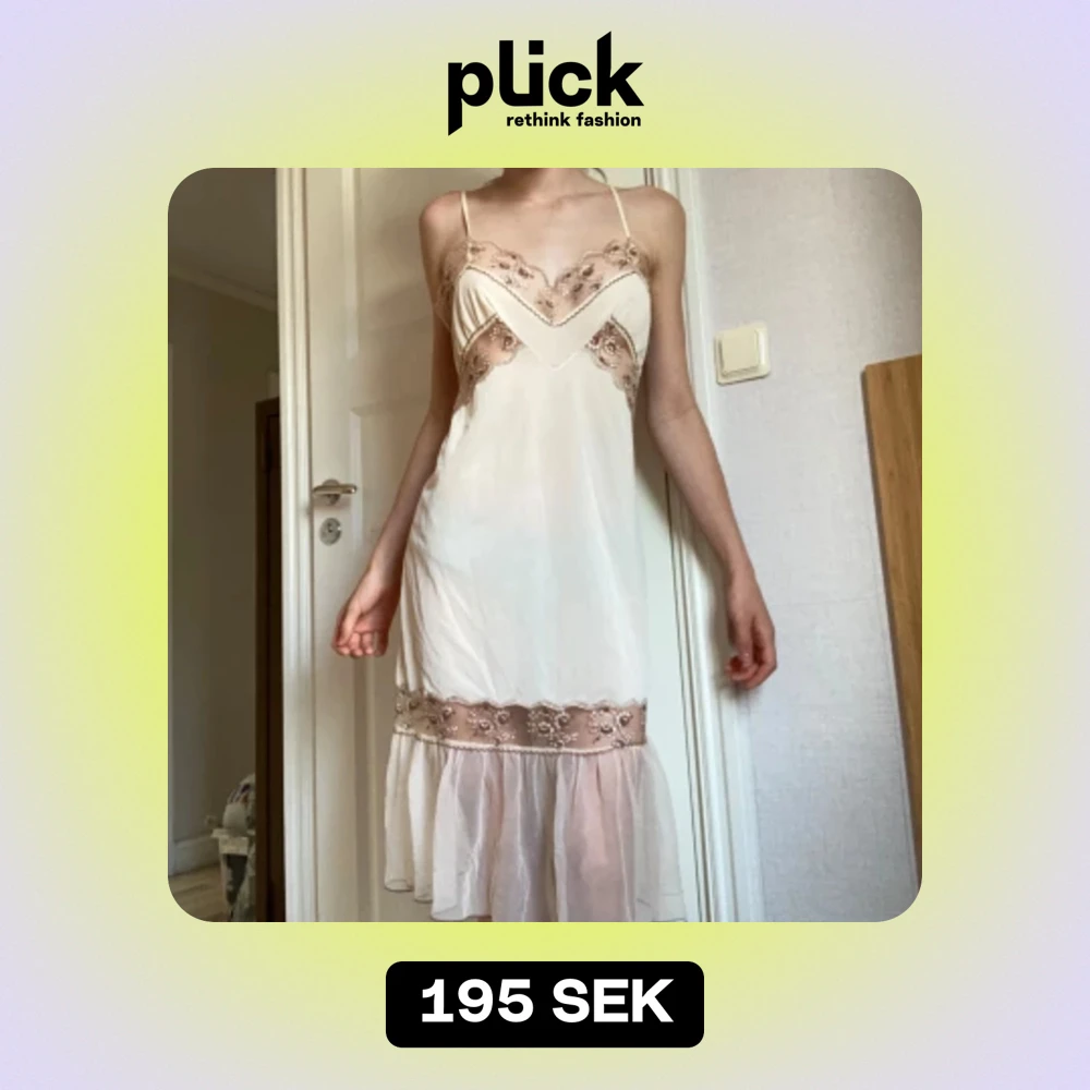 Så vacker beige nattlinne med mönstrat spets och volanger ner till ⭐️