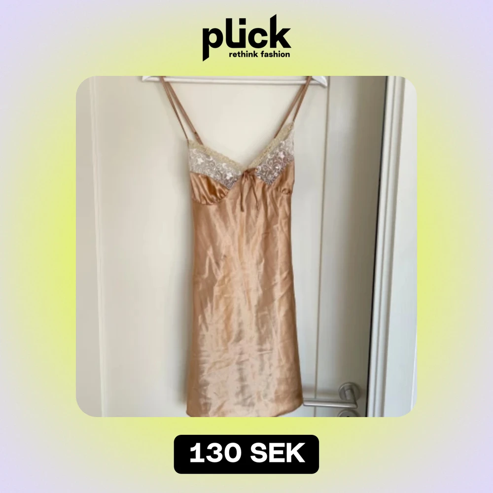 Vintage nattlinne i champange färg med flera detaljer. Observera en liten svart fläck på andra bilden, syns dock inte jättemycket.