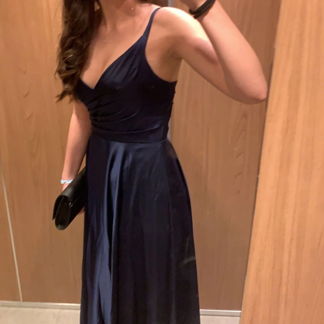 En super fin mörkblå/marinblå balklänning från Mascara som ej kommer till användning längre, den har en underkjol och har slits vid benet🥰köpt från zalando för 2500, denna klänning är slutsåld hos zalando🤗(pris kan diskuteras)