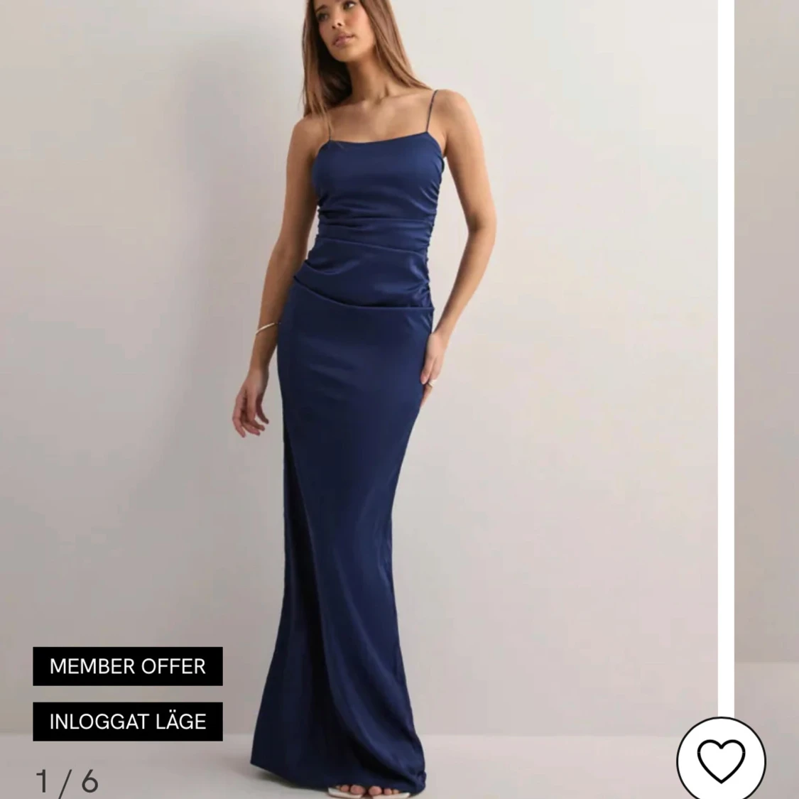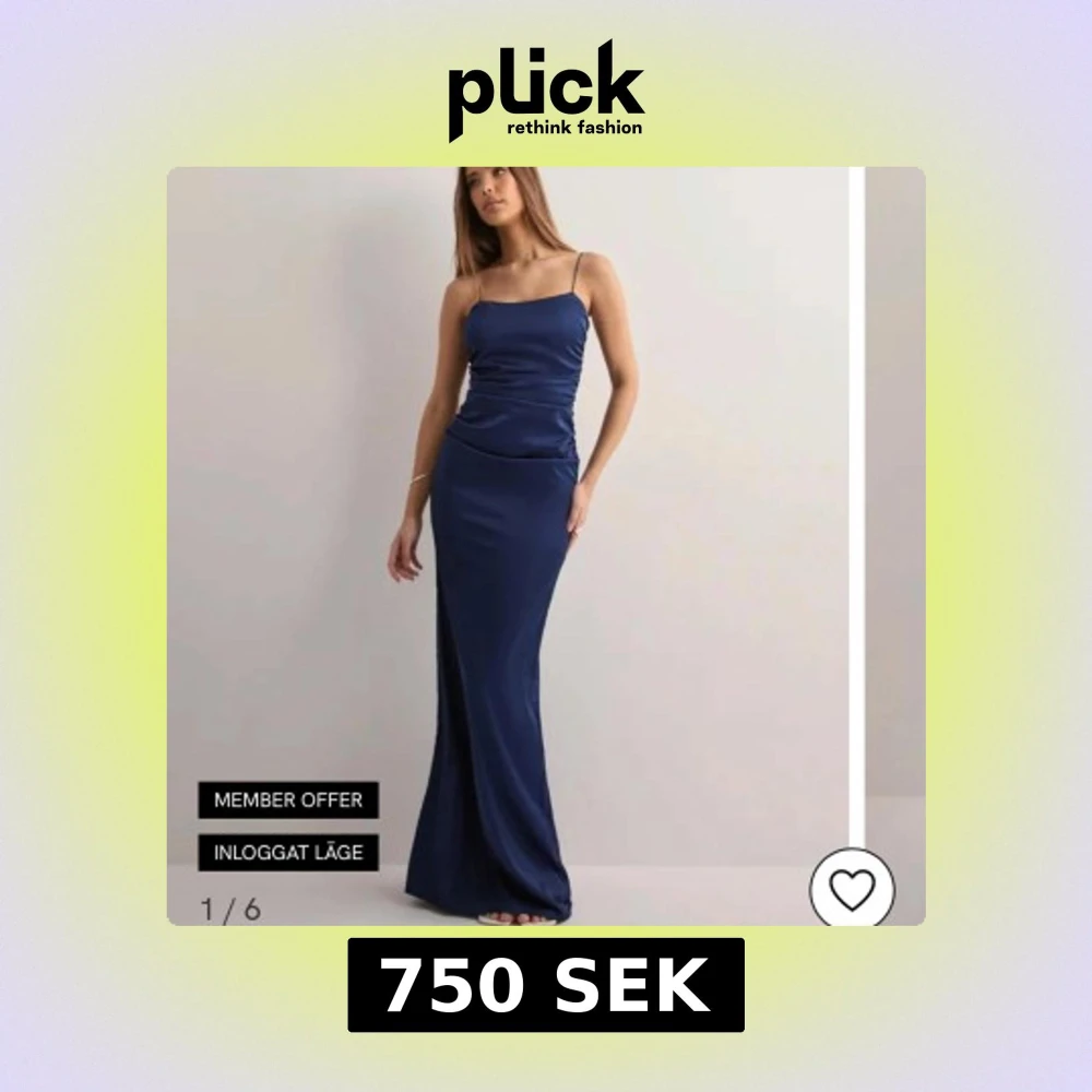 Säljer en elegant marinblå långklänning med smala axelband och figurnära passform. Klänningen har en slät satinliknande yta som ger en lyxig känsla och är perfekt för festliga tillfällen. aldirg använd, säljer då jag inte tyckte den passade mig. skriv för fler bilder😊