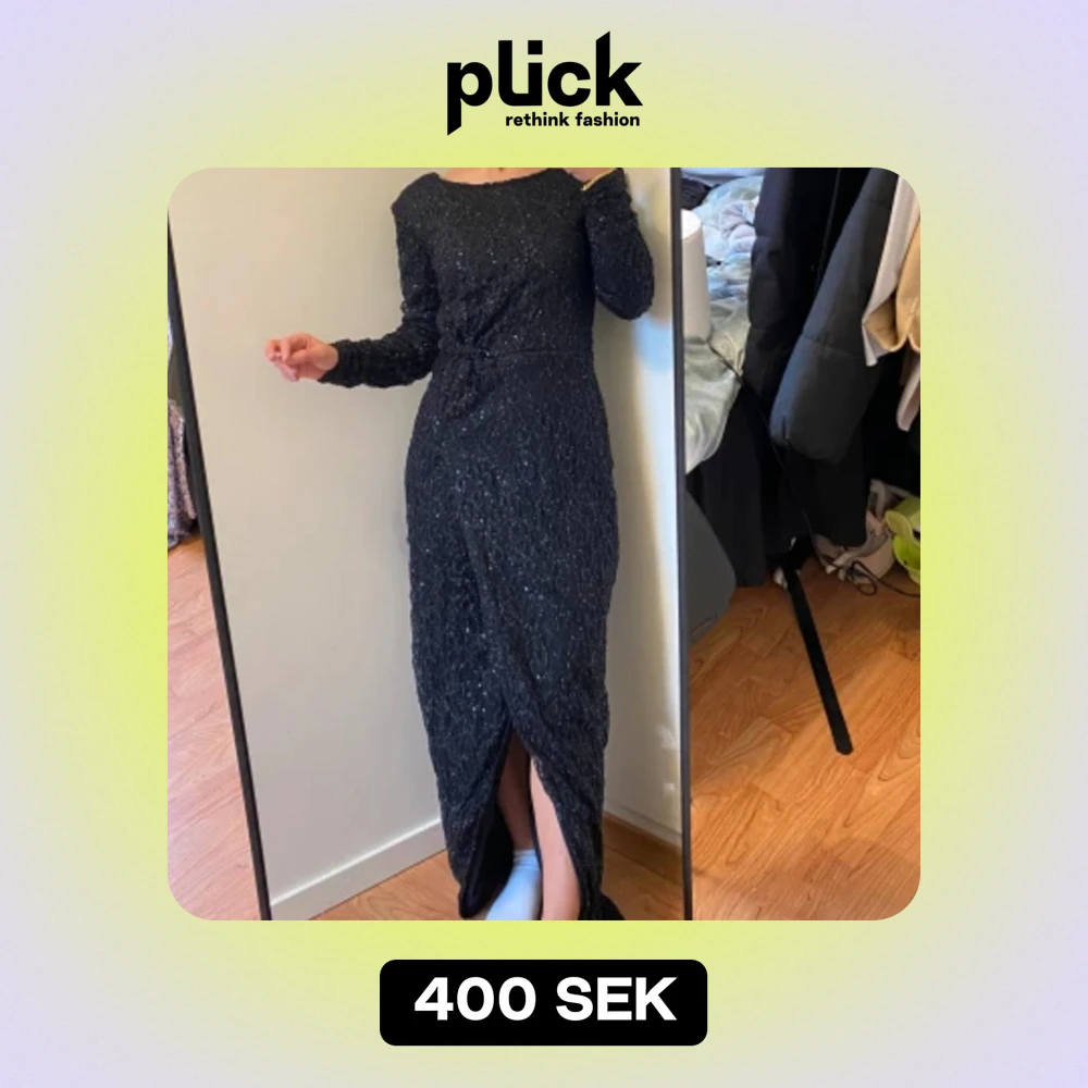 Använt 1 gång, klänningen är från Nelly svart med paljetter