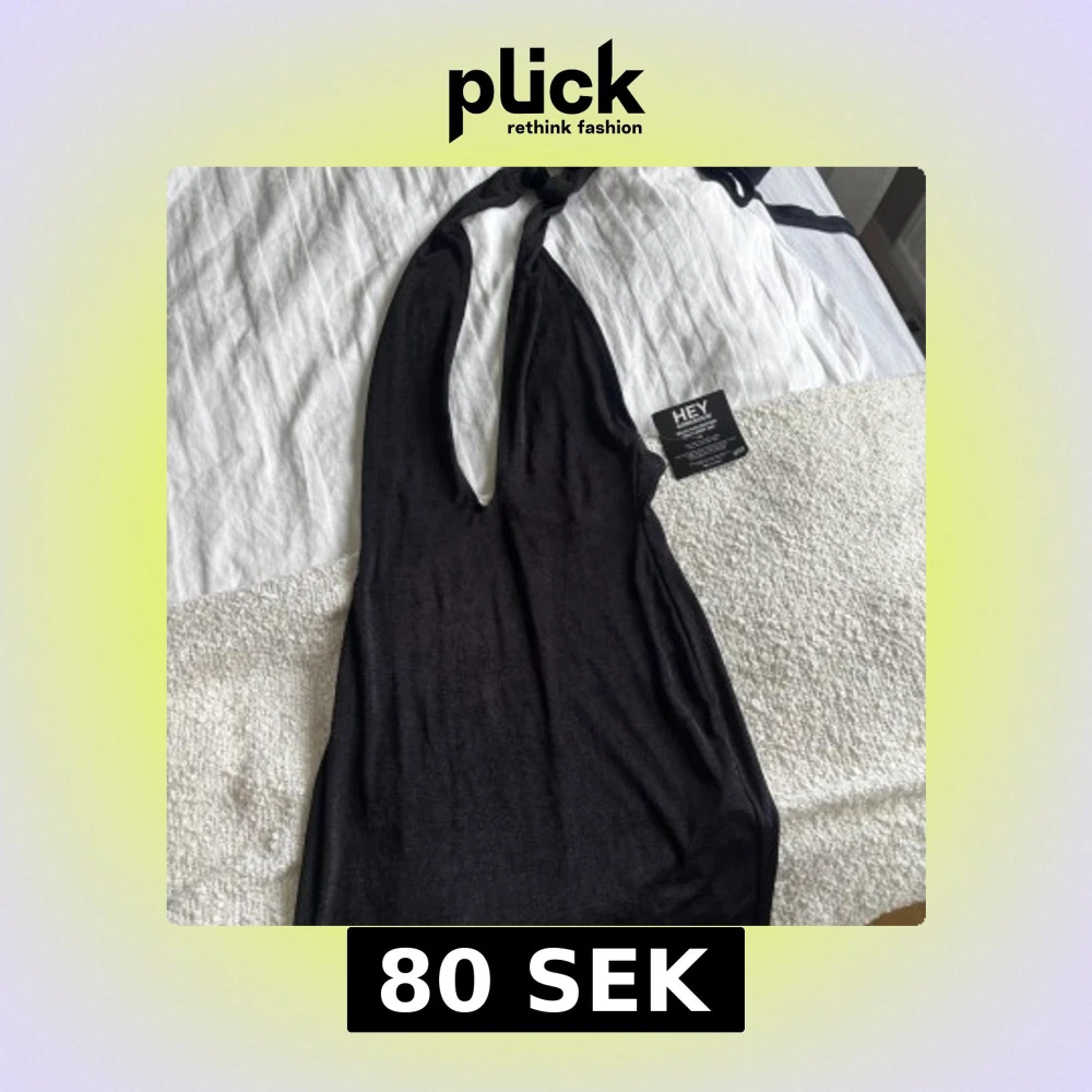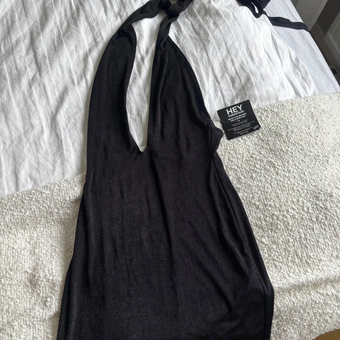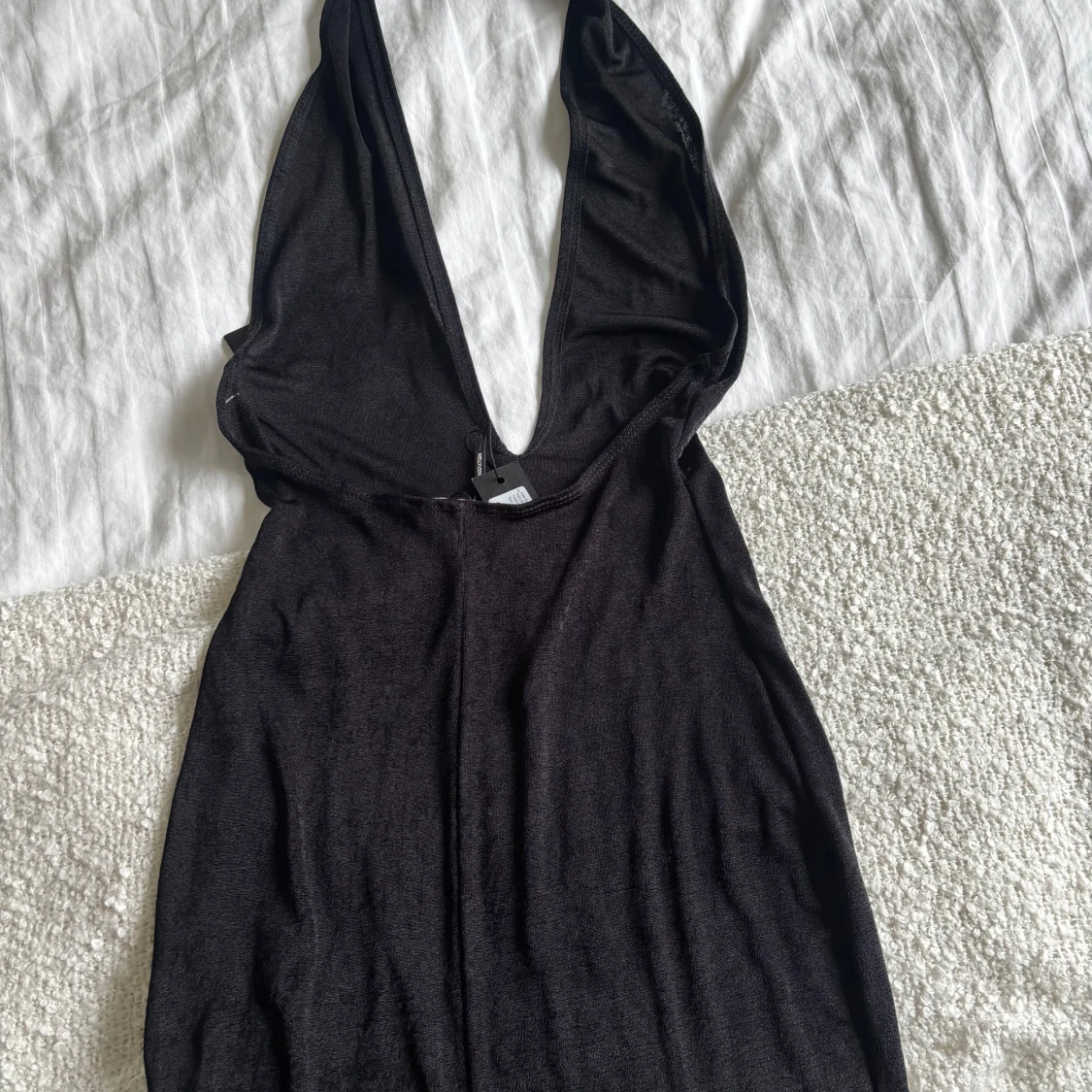 En helt oanvänd svart klänning från Nelly, prislapp kvar. I storlek 36 s. Ganska genomskinlig i materialet.