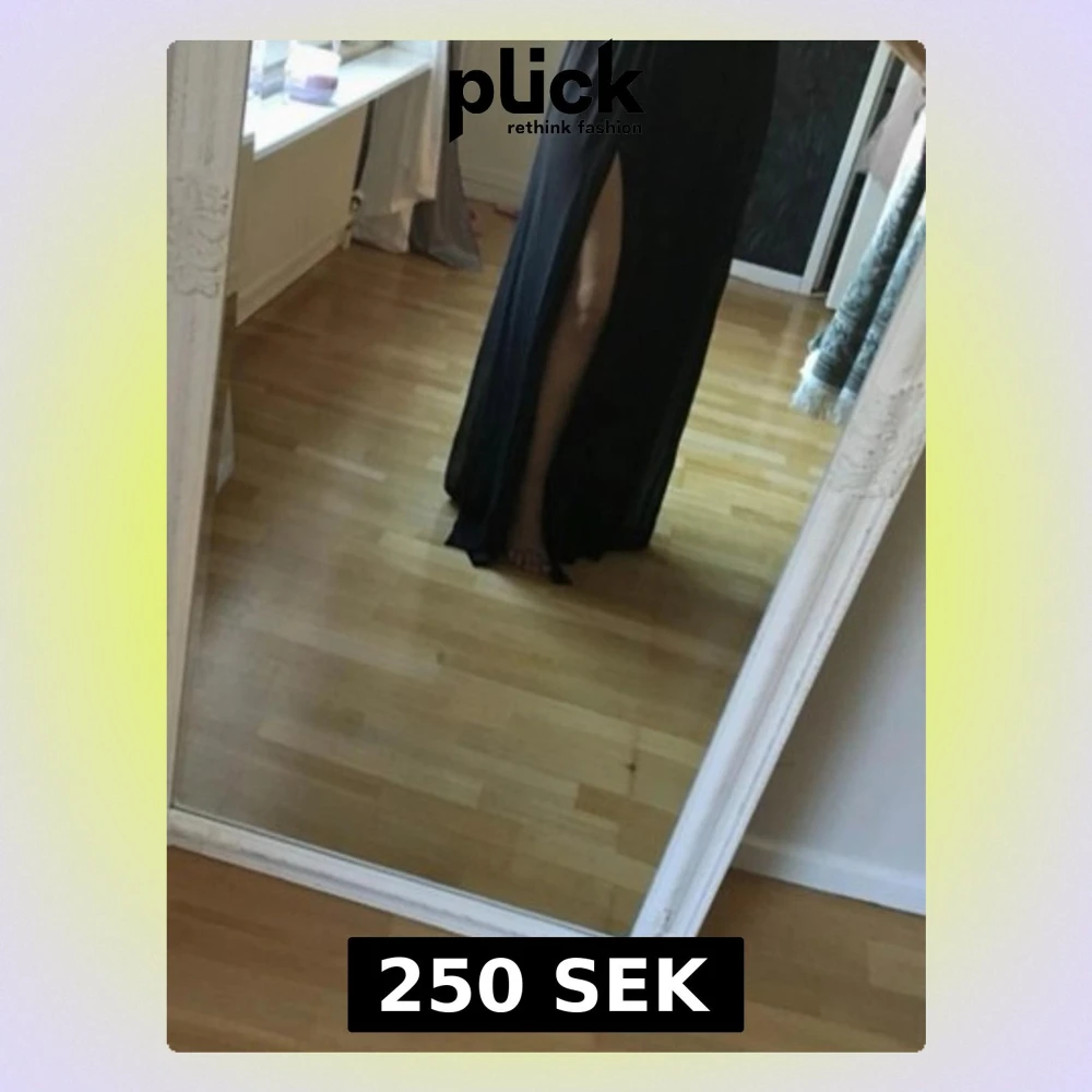 Säljer en svart långklänning med glittriga paljettdetaljer i silver och guld på överdelen. Klänningen har en hög slits på sidan och ett flowy fall i kjolen. Perfekt för bal eller fest och ger en riktigt glam känsla.