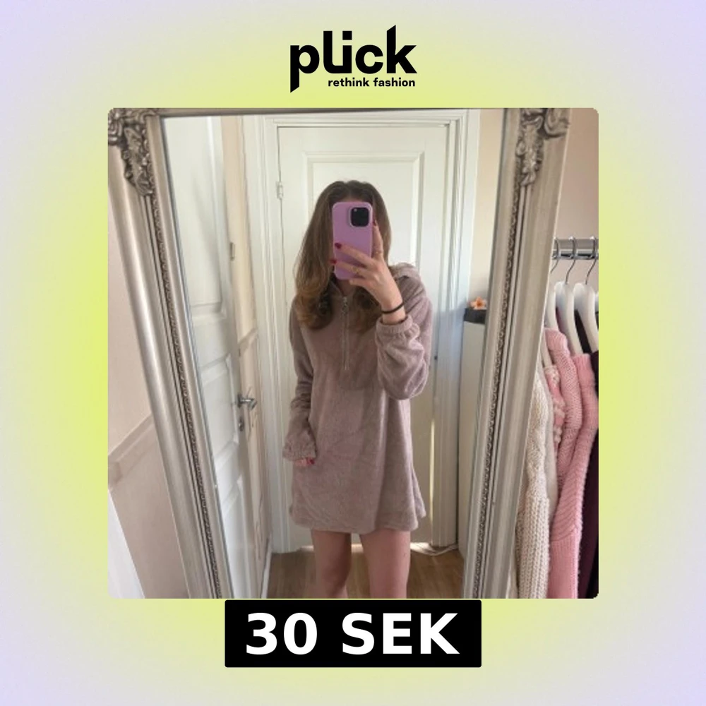 Supermysig gammelrosa fleeceklänning med huva och half zip framtill. Klänningen är kort, i ett mysigt material, har långa ärmar och en relaxed passform.