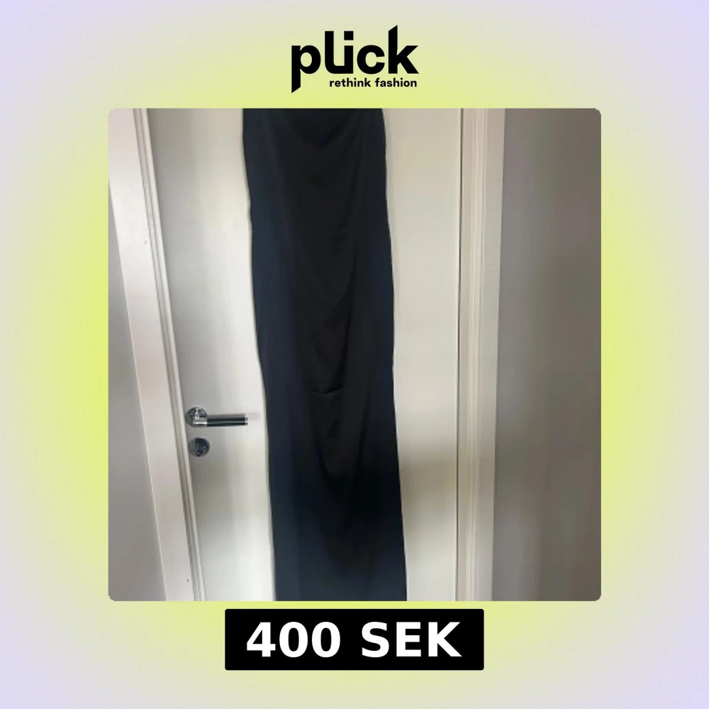 Säljer en svart långklänning i satin från Nelly i storlek 38. Endast använd 1 gång.