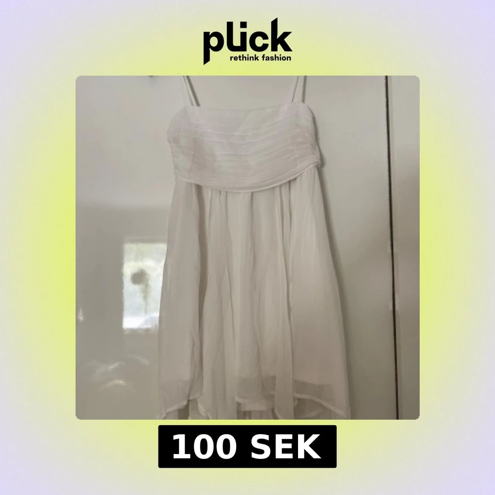 Söt vit klänning med tunna axelband och plisserad överdel. Kjolen är luftig och faller fint, perfekt för varma dagar. Smockad rygg för extra komfort och passform. Stilren och enkel design som passar till många tillfällen. Skriv om fler bilder eller frågor! Kan gå ner i pris💕💕