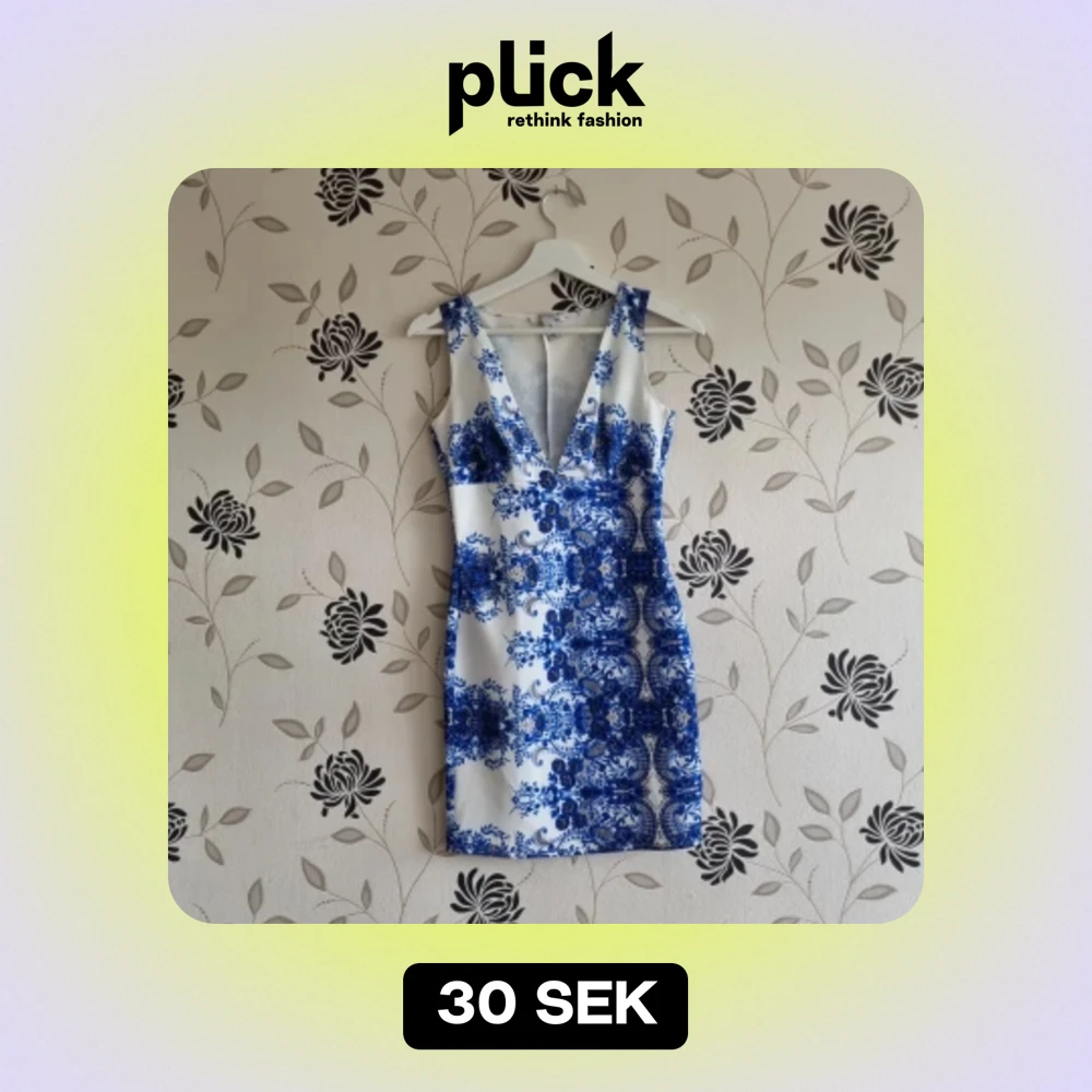 Säljer en superfin vit och blå klänning från NLY One i storlek S. Den har ett vackert blommigt mönster och en djup v-ringning. Klänningen är ärmlös och har en tight passform som framhäver figuren. Perfekt för sommarens fester! Materialet är 92% polyester och 8% elastan, vilket gör den både bekväm och stretchig.