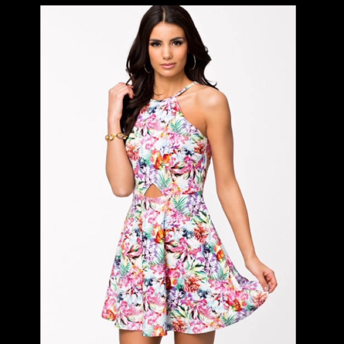 Så fin klänning i blommigt mönster och snygg passform! Aldrig använd och helt slutsåld på Nelly.com. Passa på att fynda!