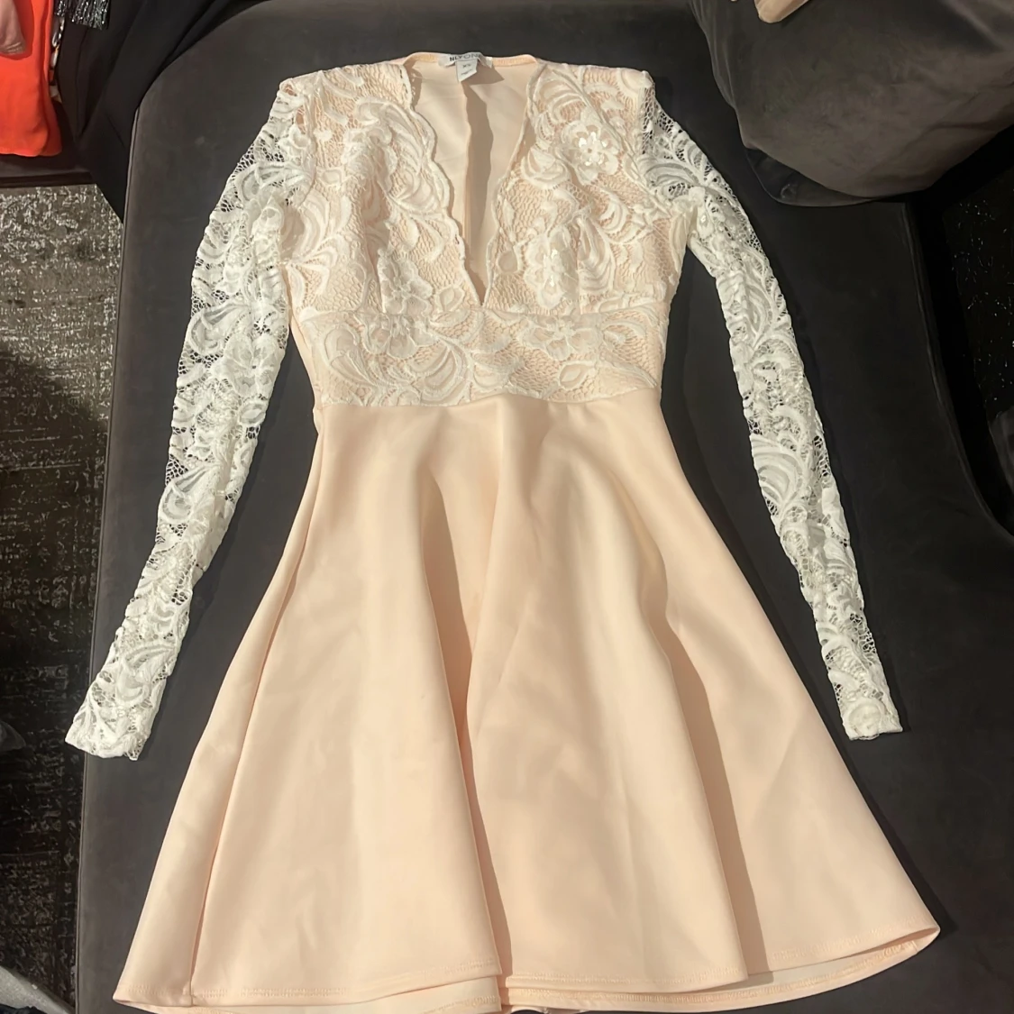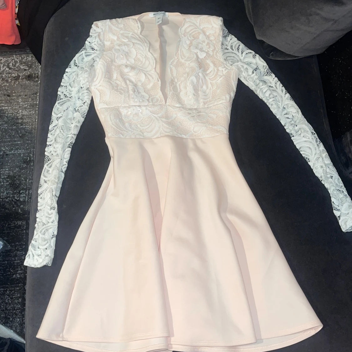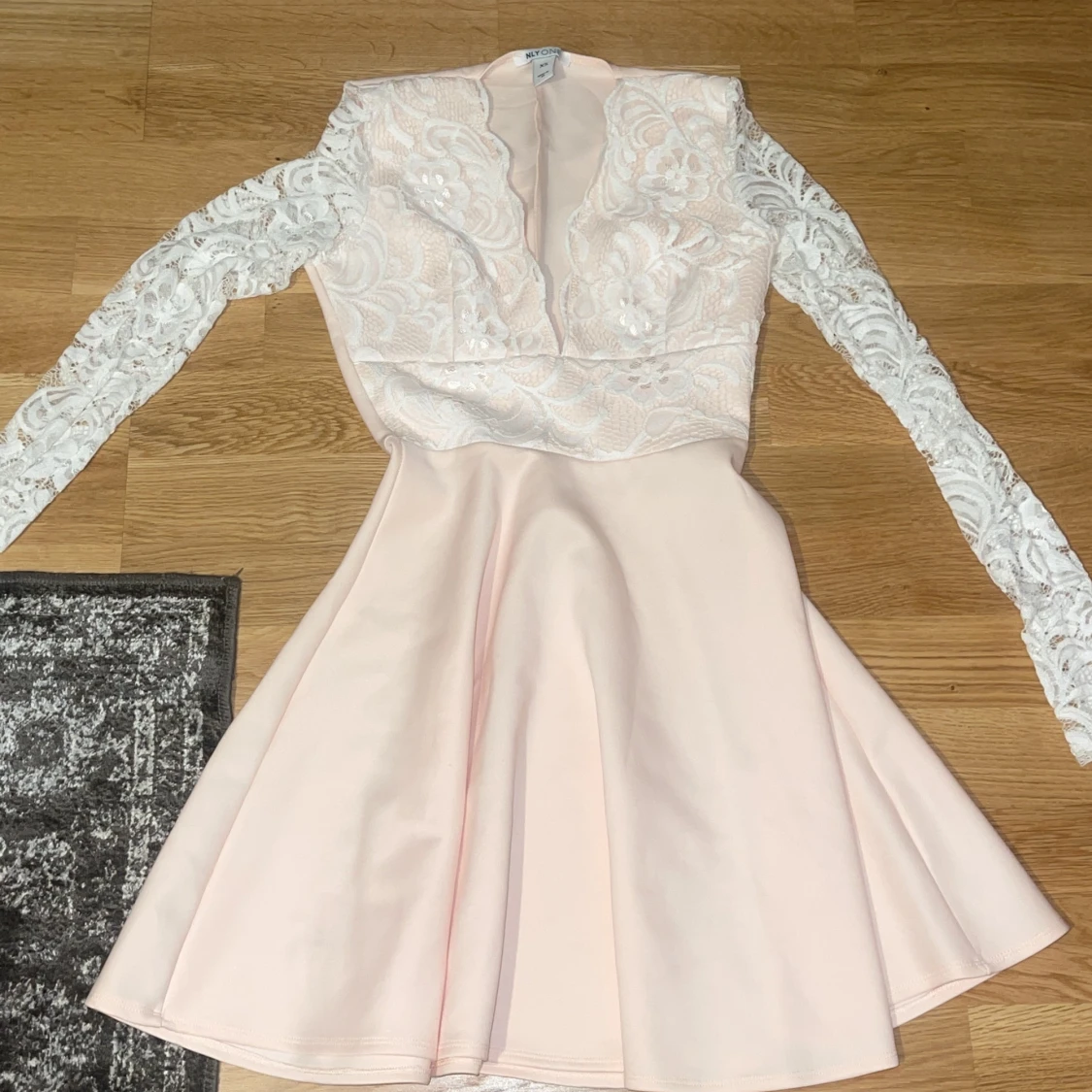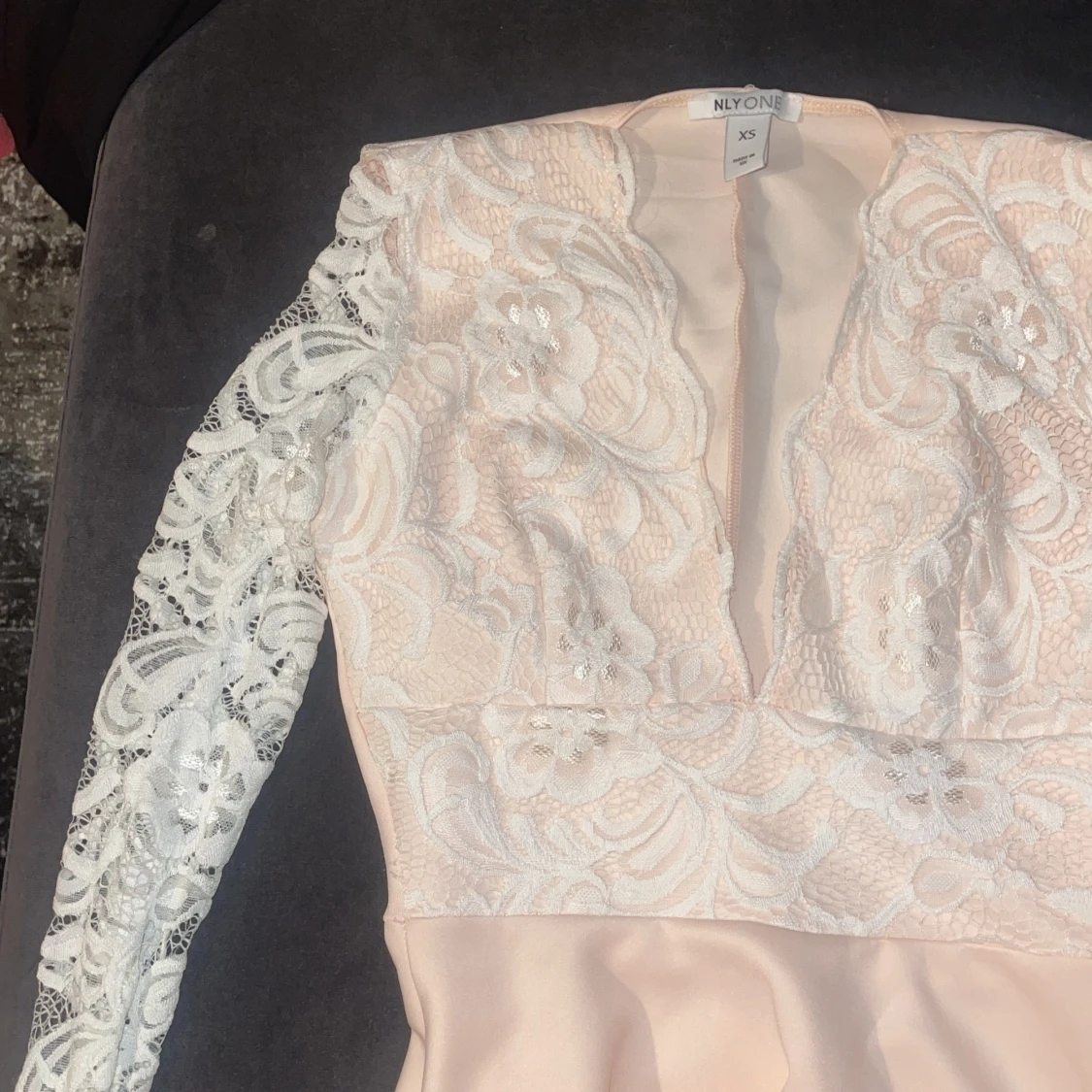 Nelly klänning med urringning i baby rosa och spets. Storlek XS