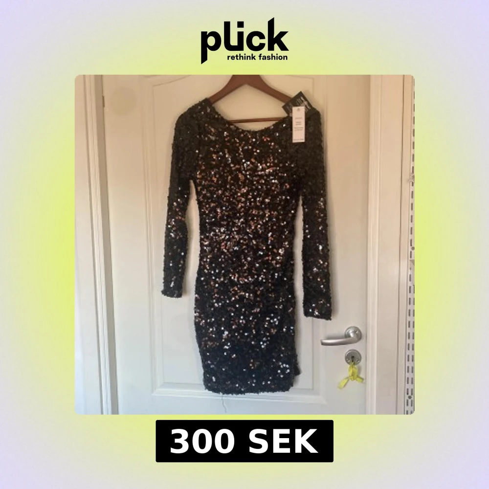Snygg svart kortklänning från NLY ONE med massor av glittriga paljetter. Klänningen har lång ärm och djup rygg, perfekt för att sticka ut. Materialet är polyester och den har en figurnära passform som framhäver siluetten.