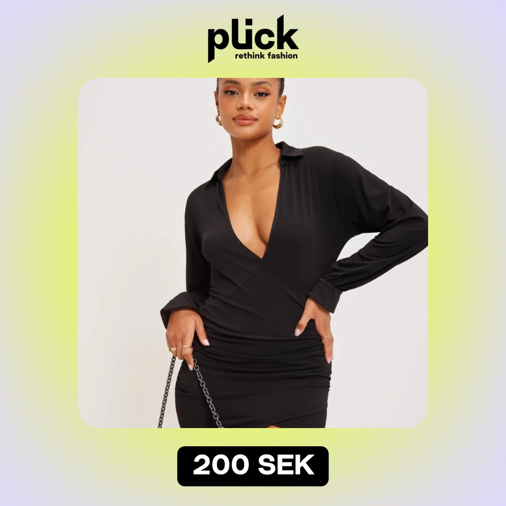 Snygg svart omlottklänning som är långärmad med djup v-ringning. Perfekt för fest! 💖Endast provad!