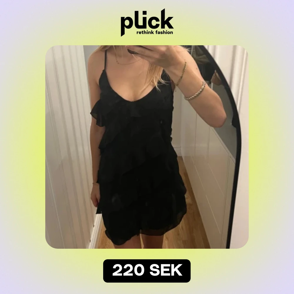 Svart klänning med volanger från Nelly i storlek 34/S💕