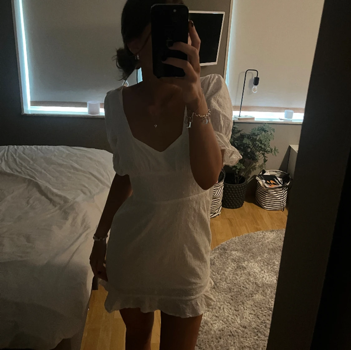 Vit klänning från Nelly. Storlek s. Endast använd en gång. Man knyter den två gånger där bak, super fin!