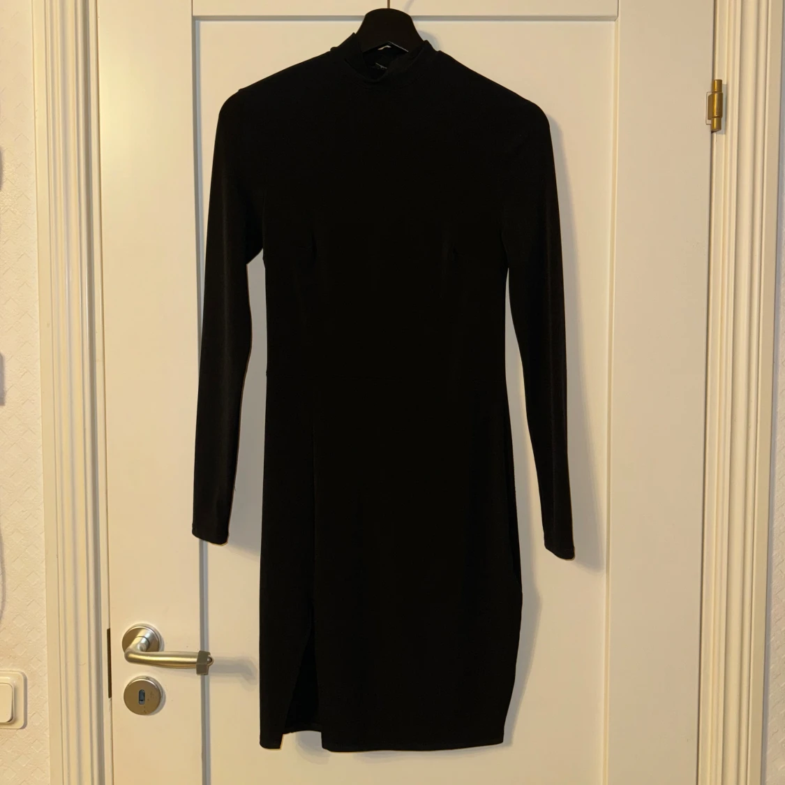 Svart tight klänning med liten slits från Nelly.com, använd 1 nyår bara så i bra skick ✨