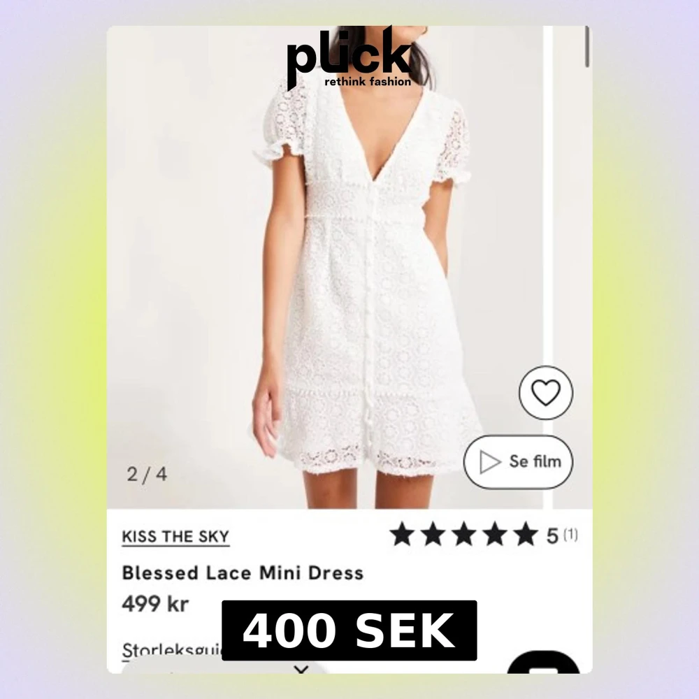 Supersöt vit kortklänning i spets från Kiss The Sky. Klänningen har v-ringning, puffiga kortärmar och fina spetsdetaljer över hela plagget. Perfekt för studenten 😍har sytt den lite högre vid v-ringningen, men enkelt att sprätta upp igen om man vill .
