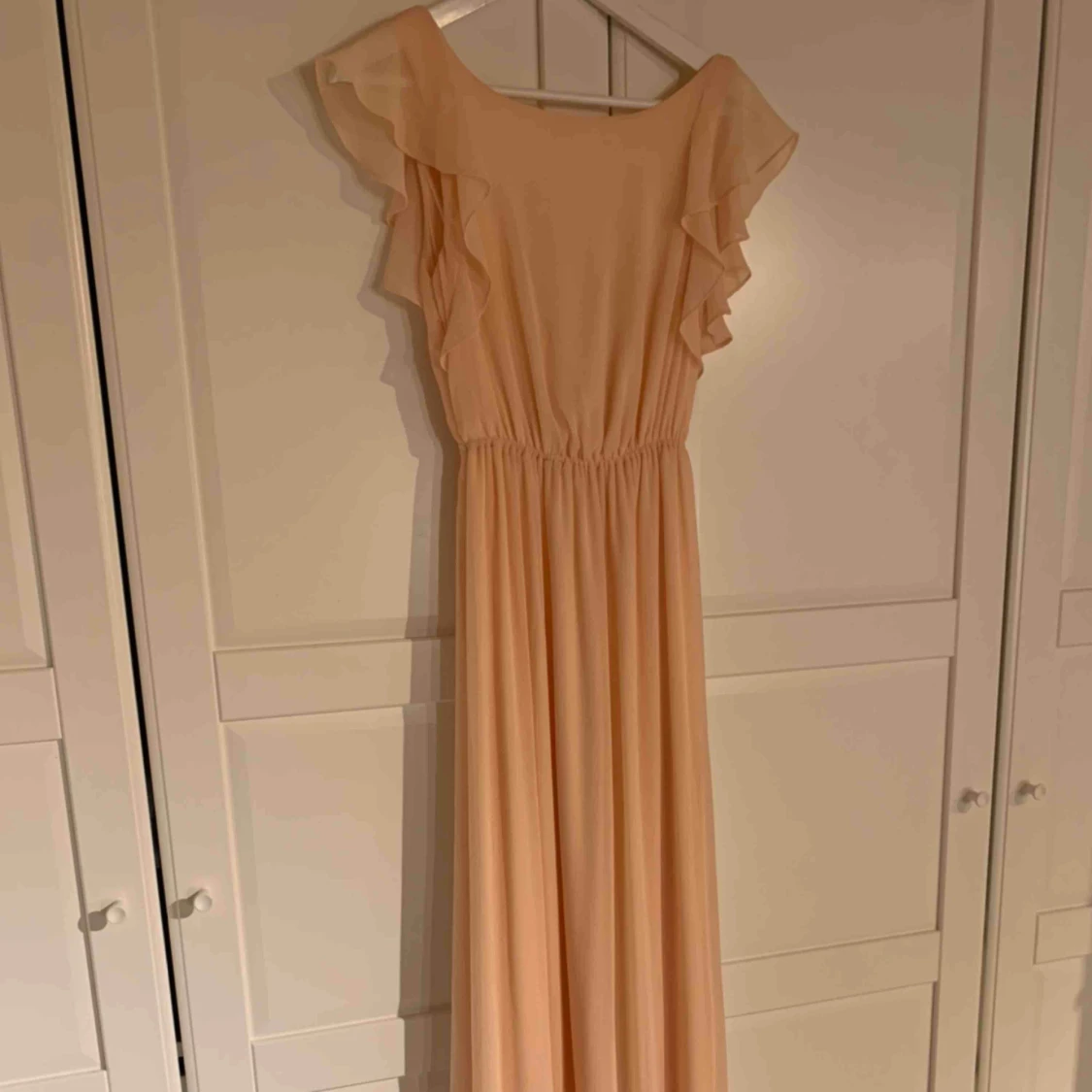 Balklänning i aprikos / persikofärgad , använd en gång på balen i 9an vilket var några år sen nu så då jag inte längre har nån användning utav den kanske de finns nån där ute som är i behov av en fin klänning till balen i nyskick