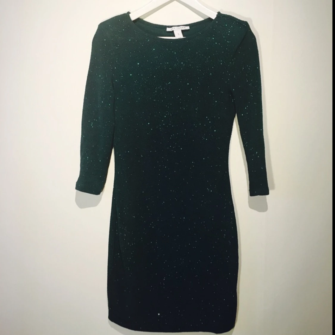 Mörkgrön, glittrig klänning från Nelly Trend. Använd en gång. Axelvaddar. Superskön!