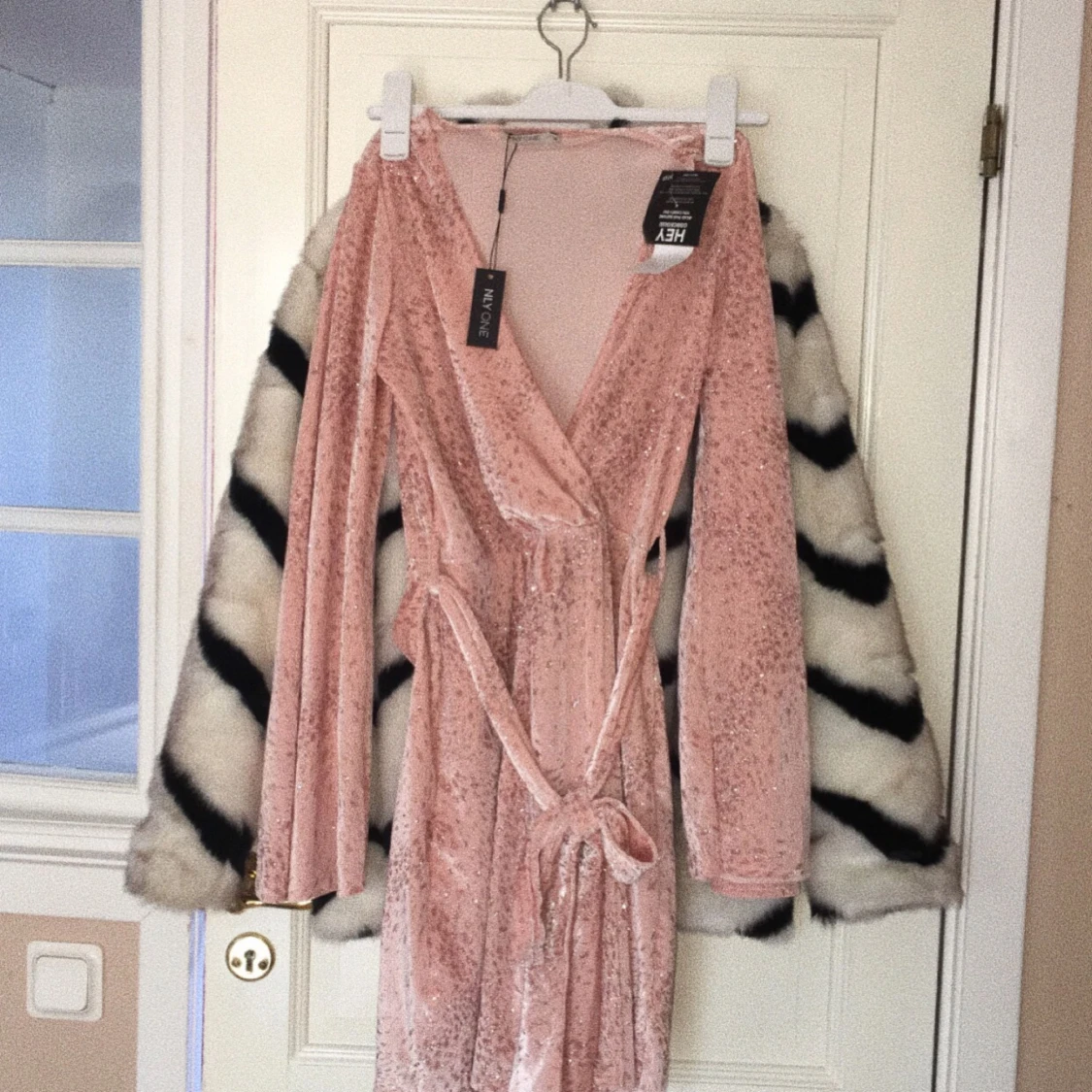 Helt ny glittrig klänning med vida ärmar ifrån Nelly. Jättefin passform men den kommer aldrig till användning tyvärr! Lapparna sitter kvar på den