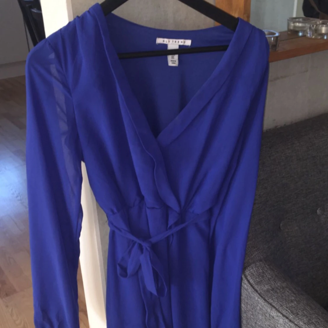 Fin blå klänning från Nelly, använd endast en gång, knyte runt midjan