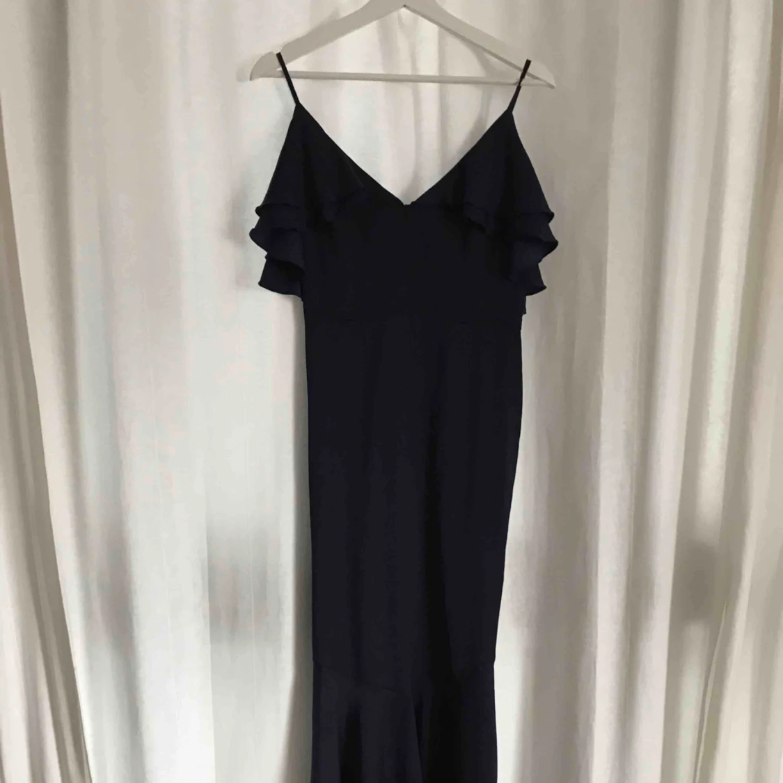 Supersnygg balklänning ”fishtail” modell. Från Nelly.com egna märke. Mörkblå storlek 38.